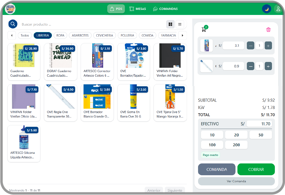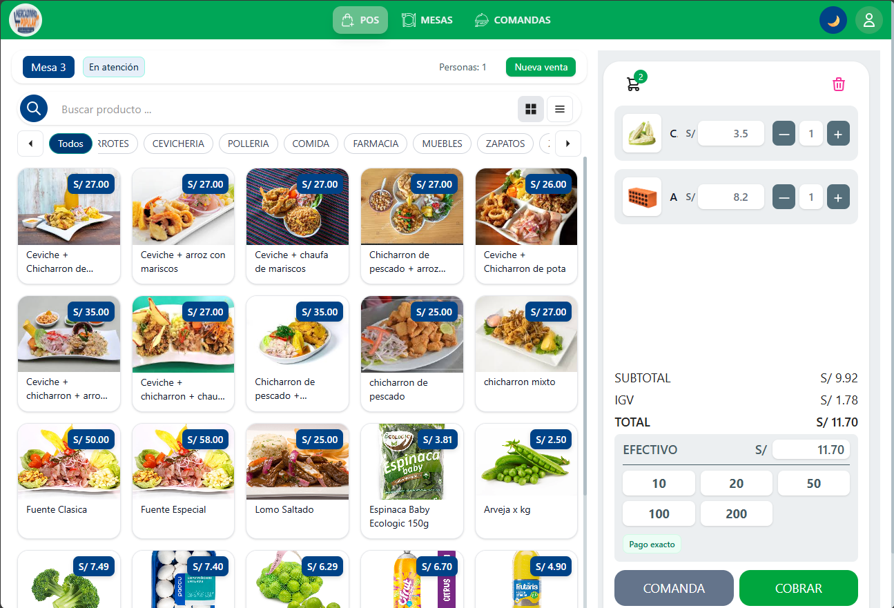 Pedidos conectados automaticamente con cocina, caja y facturacion electronica.